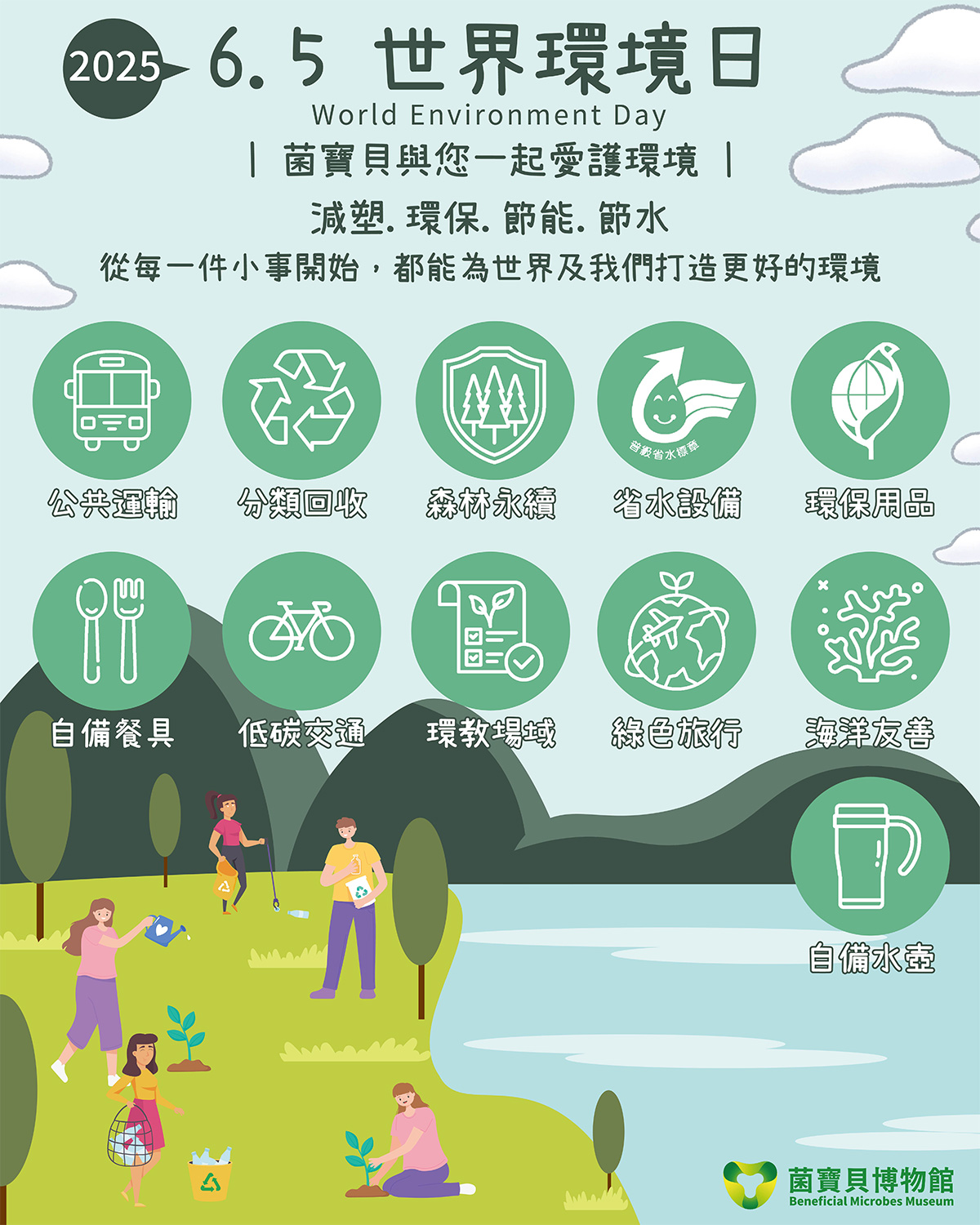 2025 年主題為 #終結塑膠污染,聚焦全球塑膠過度使用與廢棄問題,呼籲大眾從日常生活中落實 #減塑行動